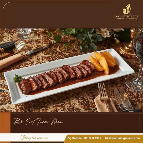 - Bò áp chảo sốt tiêu đen – mềm chuẩn độ chín, vị sốt cân bằng.